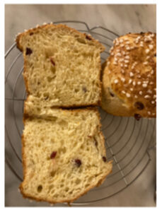 - Knead the cranberries into the dough by hand (sprinkle the dough with more flour if it’s sticky, but don’t add much).