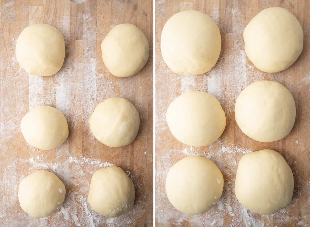 STEP 4: Shape the buns: Divide the dough into 6 parts. Shape each part into a ball. Place on a floured surface.