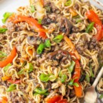 These ground beef noodles (Asian-style) make a quick and delicious weeknight dinner. The recipe features savory ground beef and crunchy vegetables, all tossed in a flavorful sauce with tender egg noodles. This satisfying dish comes together quickly and tastes so good!