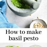 Basil pesto or Pesto alla Genovese is an Italian sauce made from fresh basil leaves, parmesan cheese, pecorino sardo cheese (optionally), pine nuts, garlic, olive oil, and salt. It makes literally everything taste better. It’s very easy to make at home and tastes so much better than store-bought basil pesto!