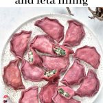 Pink Pierogi with spinach, potatoes and feta cheese filling